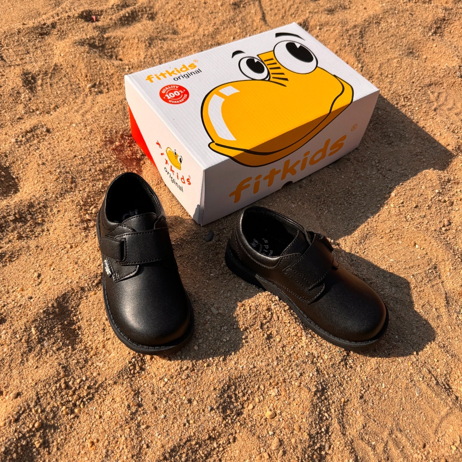 Fitkids Black Velcro-Strap Boys' School Shoes