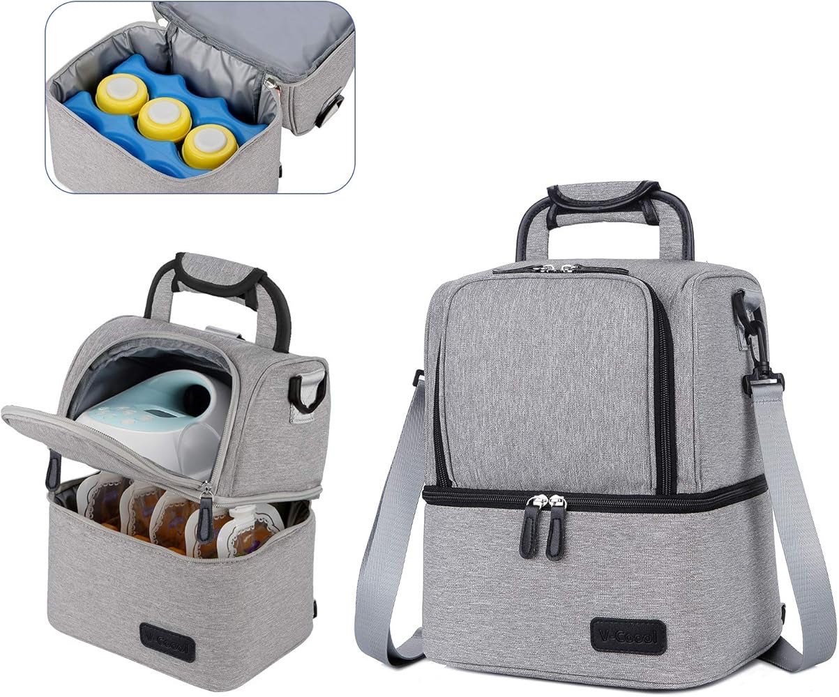 V-COOOL Insulated Double-Layer Lunch & Cooler Bag, is an excellent solution designed specifically for storing a breast pump, breast milk, and lunch while at work.